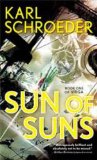 In Sun of Suns, we are placed squarely in the world of Virga, where the rules of physics that we are familiar with apply…differently. We meet the primary character (Hayden Griffin) and he is so entrenched in his world, such a product of the culture and setting that created him, that at no point (as far as I can remember) are we told that Virga is a fullerene sphere. For Griffin, artificial suns and orbiting asteroids are the world. He does not perceive them or the odd physics they produce as strange. How could his world be any different? Griffin’s acceptance of the setting and the slightly-shifted physics of Schroeder’s world help to draw us into that setting and to accept it.