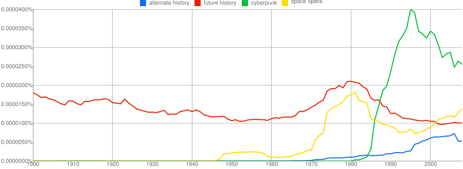 The Rise and Fall of Cyberpunk, The Fall and Limping Recovery of Space Opera, and the Gradual Climb of Alternate History
